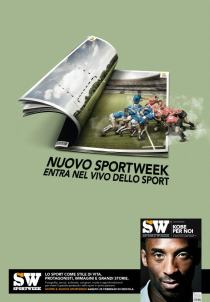 Esce a fine febbraio, l’inserto della Gazzetta dello Sport, rinnovato nella sua nuova veste grafica. Pagina pubblicitaria di grande effetto in cui il mondo della tridimensionalità si fa sempre più spazio. Advertising nel complesso molto semplice ma di grande impatto.
